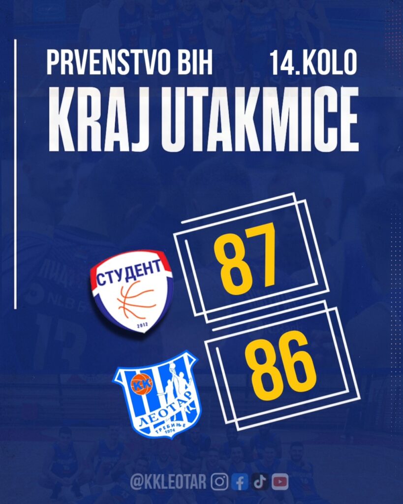 Иако су били надомак, на један шут од побједе, кошаркаши Леотара вечерас су поражени у Лакташима од екипе Студент Мтел у утакмици Максбет Премијер лиге БиХ резултатом 87:86.