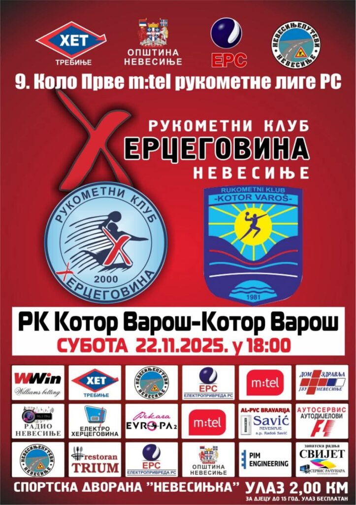 Meč se igra u Sportskoj dvorani „Nevesinjka“, sa početkom u 18 časova.